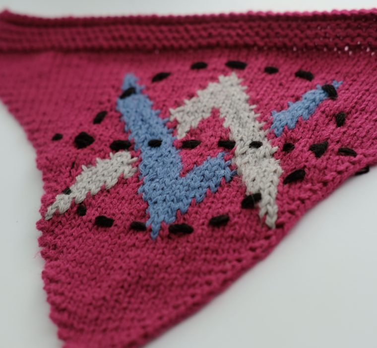 Banner made of ceramic and knitted buntings with tassels (Installation)